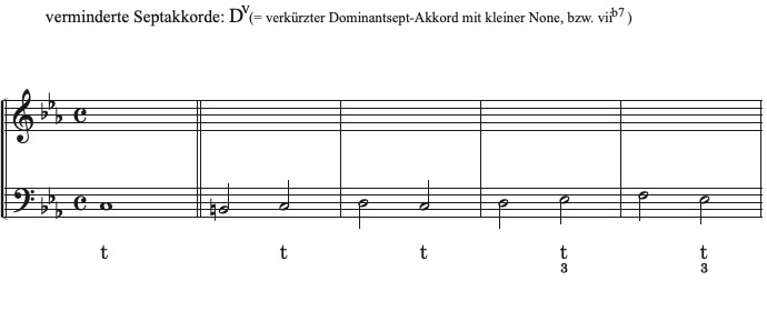 Der ganz-verminderte Septakkord (z.B. h-d-f-as) verhält sich wie eine Dominante (Auflösung zur Tonika) und kann aufgefasst werden als ein Dominantseptakkord ohne Grundton (1=g), dafür mit kleiner None (b9=as) - genannt "Dv". Wenn dem Dv der Dominant-Grundton fehlt, heißen seine Akkordtöne folglich 3-5-7-b9! Schau dir das Kapitel mit den D7-Umkehrungen noch einmal an (Kurs B 1.2): Um aus einem Dominantseptakkord einen "Dv" zu machen, musst du nur den Grundton (1) mit der kleinen None austauschen (b9).